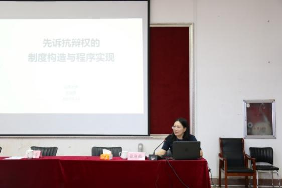 在互动环节,张海燕教授与在场师生对报告涉及的相关问题进行了热烈的讨论,与谈人齐晓霞教授阐述了自己对先诉抗辩权制度的理解和看法。最后,刘康磊教授对此次报告进行了总结,并向张教授表达了诚挚的感谢。