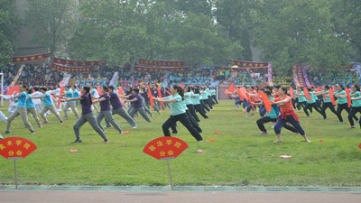 方阵结束后全体教师职工的太极扇表演精彩纷呈,老师们伴着《中国功夫》铿锵有力的音乐声,用整齐划一的动作将看似柔和却充满力量的太极功夫扇展现出来。扇舞与太极功夫的结合,场面大气恢弘,震撼了现场的每一个人。