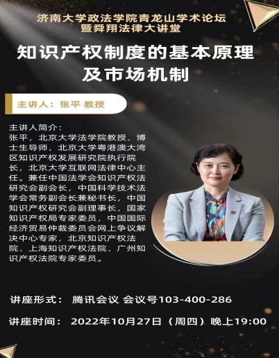 青龙山学术论坛暨舜翔法律大讲堂于线上举办,此次讲座特别邀请北京大学法学院教授、博士生导师张平教授做题为《知识产权制度的基本原理及市场机制》的学术报告。讲座由糖心视频
