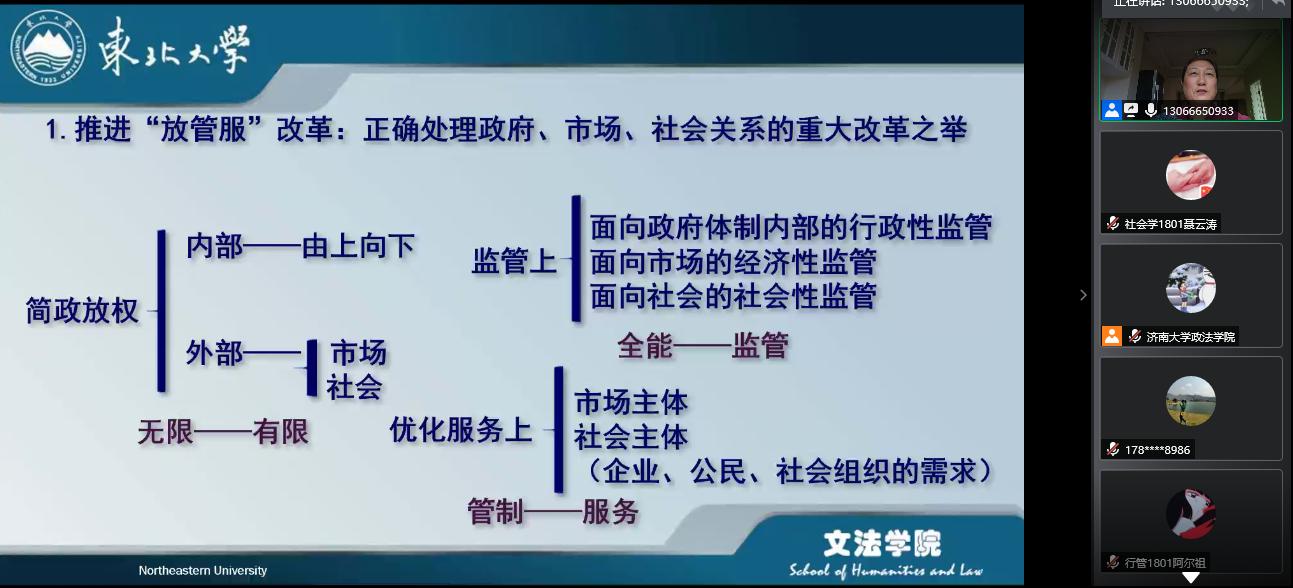 “青龙山论坛•线上系列论坛”第八期在腾讯会议平台顺利举行。活动邀请全国MPA教育指导委员会委员、东北大学文法学院博士生导师孙萍教授做题为《“放管服改革”:从制度优势到政府效能》的专题讲座。讲座由糖心视频