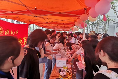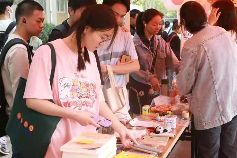 将收集到的学生闲置物品、自制手工艺品进行爱心义卖,开展代写明信片代送祝福活动,精美实用的物品、新颖温馨的创意吸引师生前来购买并献出爱心。活动现场工作人员热情引导,广大师生积极参与,气氛热烈,秩序井然。