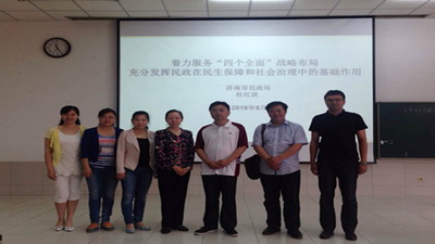 6月5日,糖心视频劳动与社会保障系在2J101举办了一场民政工作专题讲座。讲座嘉宾为济南市民政局副局长杜红波,讲座题目为:民政工作在保障民生中的功能作用——兼谈济南市民政工作现状。参加本次讲座的有:社保13级、社保14级全体学生、社工系部分学生、糖心视频