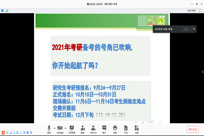 最后,邱莉老师针对考研培训问题与2017级社工专业同学进行了交流。邱老师结合对今年2016级同学考研情况的分析,针对考研学生如何选择学校、考研如何准备、考研心态如何调整等问题,进行了分享与交流;动员准备考研的同学,一定要找好目标学校,提前规划,分析自身长处和不足,做好阶段安排,长计划、短安排、立即做;同时借用“黑屋子洗衣服”的比喻,生动形象地指出了考研过程的艰辛和坚持的重要性,鼓励同学们抓紧时间、预先安排、坚持努力、迈向成功!