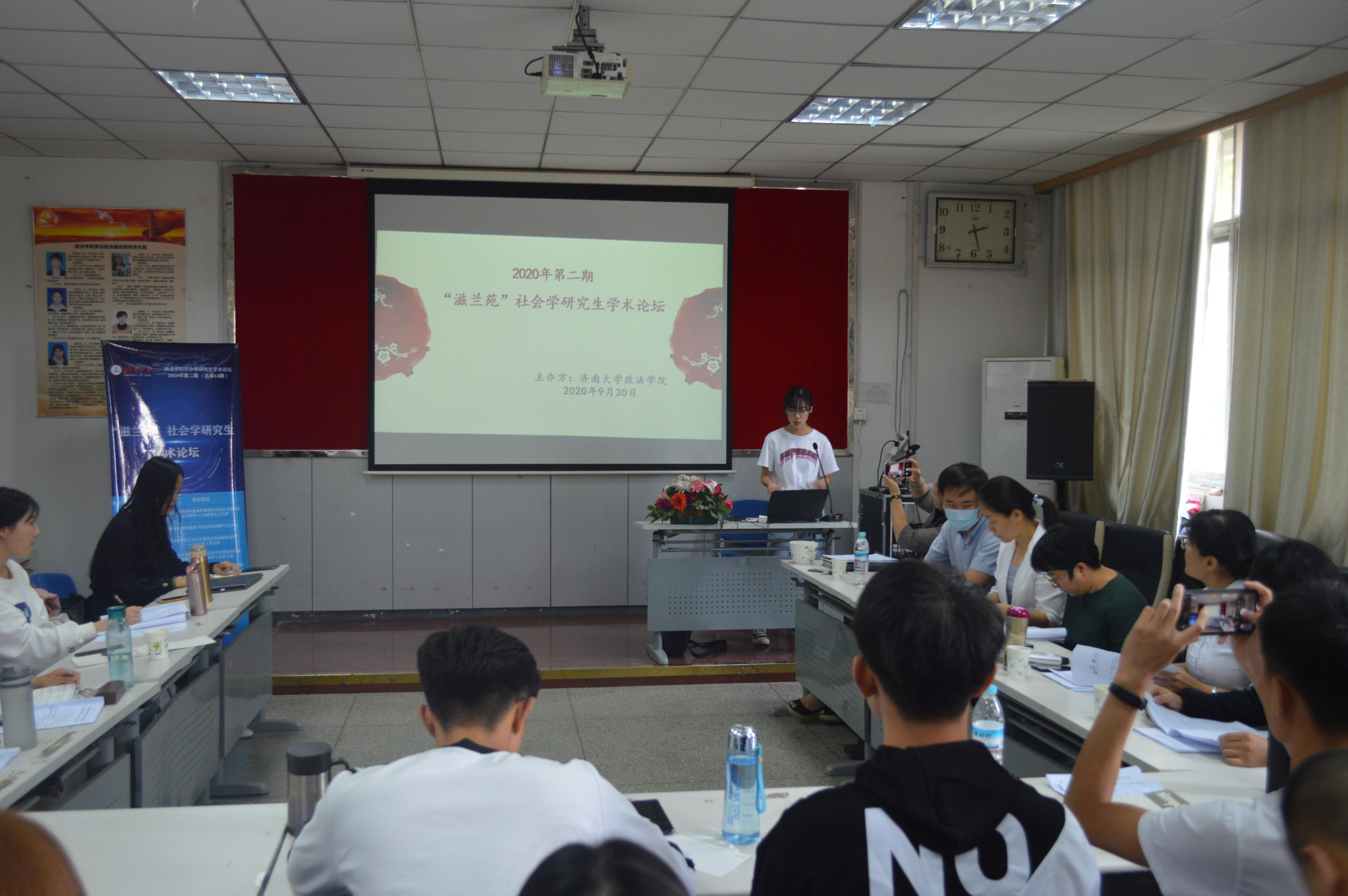 于2020年9月30日下午在三教210会议室举办2020年第二期“滋兰苑”社会学研究生学术论坛。本次论坛邀请梁丽霞教授、张荣教授、杜以芬副教授、张银副教授、孙红晔博士、马磊博士担任点评嘉宾,2018、2019、2020级全体社会学研究生参加此次论坛,论坛由院研究生会竞赛部毛艳洁主持。