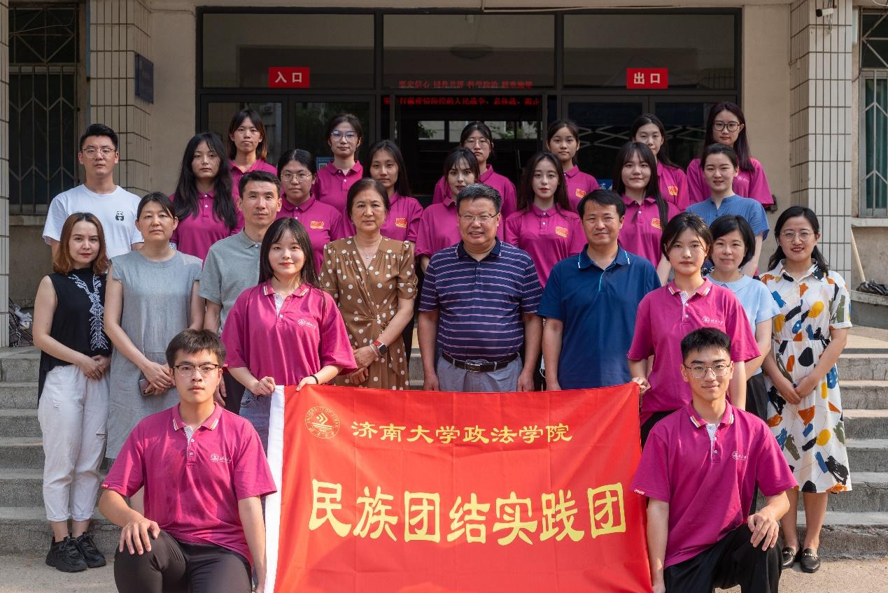 2022年6月20日,学院党委书记徐庆国,院长高功敬,正处级组织员国迎春,党委副书记、副院长李涛,院长助理朱丽敏、李秀凤,学办主任黄茜,团委书记刘晓娟,辅导员迪妮尕尔·艾尔夏提、赵朔、宗琪等老师同“青马工程”暑期实践团全体成员合影。