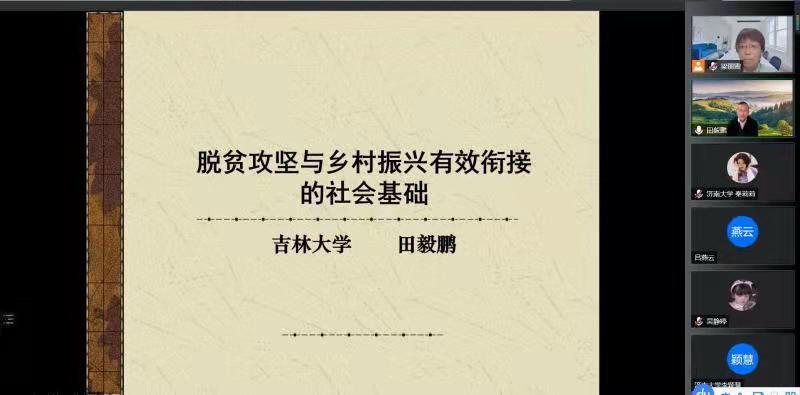 青龙山学术论坛暨社会学学科设立十五周年系列学术讲座于11月12日晚7点在腾讯会议平台线上举办,此次论坛邀请中国社会学会副会长、吉林大学哲学社会学院院长田毅鹏教授作题为《脱贫攻坚与乡村振兴有效衔接的社会基础》的学术报告,报告由梁丽霞教授主持,学院相关教师及社会学研究生共100余人线上参加。