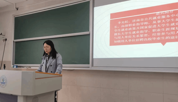 本次讲座的主题是“知己知彼,顺势就业”。李允松副处长从“大学生就业形势”、“大学生就业现状”、“人力资源管理专业运用”、“大学生就业创业政策”、“做好就业前准备工作”五个方面展开了一场深入人心的就业知识讲解。在大学生就业形势方面,他分析了当前总体就业形势并强调就业竞争更加激烈。在大学生就业现状方面,则总结了当前大学生的就业特点,呼吁同学们尽早做好就业准备。在人力资源管理专业运用方面,其分别从人力资源管理现实应用、市场需求、行业趋势、职业发展等多个角度分析该专业的运用现状,并提出了几点建议:一是掌握基本的专业知识和技能;二是提高自己的实践能力和经验;三是培养自己的沟通能力和团队协作精神;四是考虑跨学科学习;五是关注行业动态和发展趋势。在大学生就业创业政策方面,介绍并解读了济南市人民政府办公厅2022年8月3日印发的《济南市支持高校毕业生就业创业政策(40条)》,帮助同学们深入了解就业创业政策,提振就业信心。在就业前准备工作方面,他举例说明了四个就业层次,介绍了大学生就业的六个途径并详细讲解了国企校园招聘流程及注意事项。最后,李处长为同学们进行答疑解惑并表达了殷切的祝福。