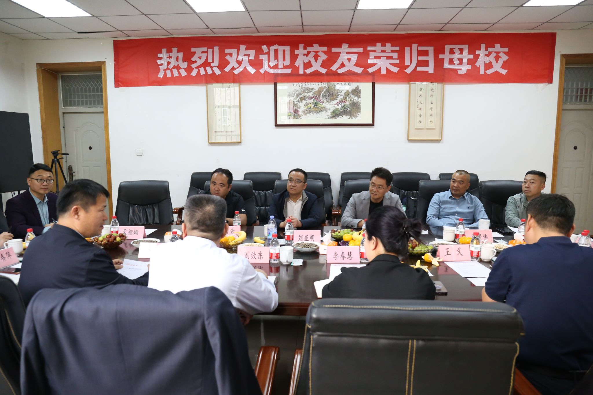 刘效东对校友始终情系母校表示衷心感谢,期待校友继续充分发挥自身优势,深化与母校的交流合作,为学校高质量发展凝聚力量。王义回顾了校友求学时的美好时光和浓厚师生情,为大家取得的成就感到由衷高兴,希望大家与母校紧密联系、携手前进。