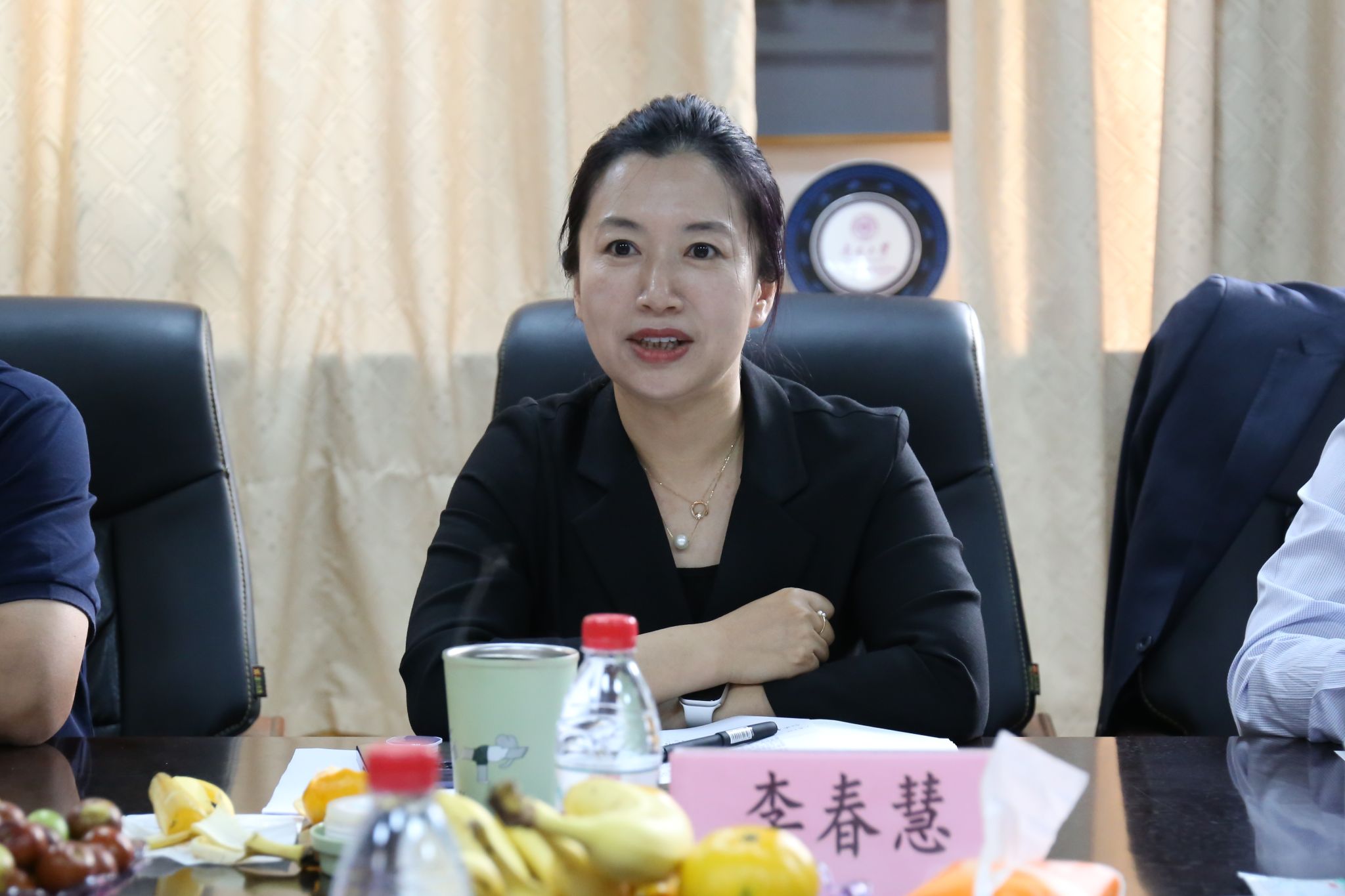 李春慧代表学院向莅临此次座谈会的各位领导、校友代表们表示热烈欢迎,对校友们长期以来关注支持学院事业发展表示衷心的感谢!她指出,多年来,学校栉风沐雨、凝心聚力,培养了满园桃李、无数栋梁,校友们在各自领域建功立业、施展才华,积极创新,向下深耕、向前突破,取得了优异的成绩,这无不体现着政法“务实、创新、奉献、和谐”的学院精神。校友是宝贵的资源和财富,杰出校友尚行致远的价值操守激励着在校学生以“政法”精神自励,夯实知识基础、练就“行稳致远”的本领、锤炼坚毅的品格,心怀感恩,形成正确的价值认知;优秀校友结合自己所处的行业实际和实践经历给予在校学生真诚的人生建议,帮助学生形成正确的职场认知;创业类校友注重社会责任承担,不仅为学院捐资、捐物兴学,还通过建立社会实践基地和就业实习基地参与学生实践能力培养。校友们为学院发展提供了重要的资源与支持,对学院的高质量发展起了重要的推动作用。