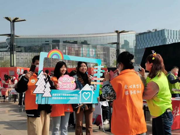 3月21日上午,由山东省民政厅、济南市民政局、山东省社会工作协会和济南社会工作协会联合举办的推进“五社联动”,关爱“一小一老”山东省暨济南市2023年度社会工作主题宣传活动在泉城广场举行。济南市市中区心家园社会工作服务社参加“一米阳光·社工同行”社会工作发展成果展,我校社会工作专业21级、22级九名学生组成实习小组,协助心家园社会工作服务社开展社工日宣传活动。