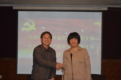 法学系的党建工作以及学科建设。双方交流后,共同签订了结对共建协议并且观看了山东省女子监狱宣传片。期间,女子监狱一监区党支部党员李佳佳同志向大家分享了疫情期间自己的援鄂经历,令人赞佩和敬仰。双方共同观看了糖心视频