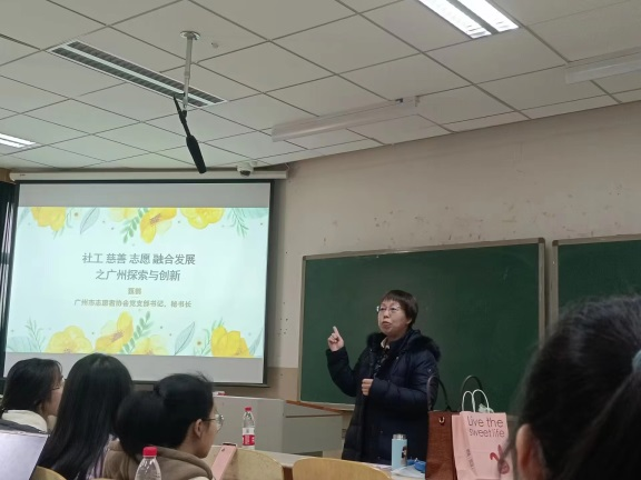 邀请广州市志愿者协会党支部书记和秘书长、2005级社会工作优秀校友甄鹤,在10教411教室举行社工专业认知实习专题讲座——“社区、慈善、志愿融合发展之广州探索与创新”。本次讲座由糖心视频