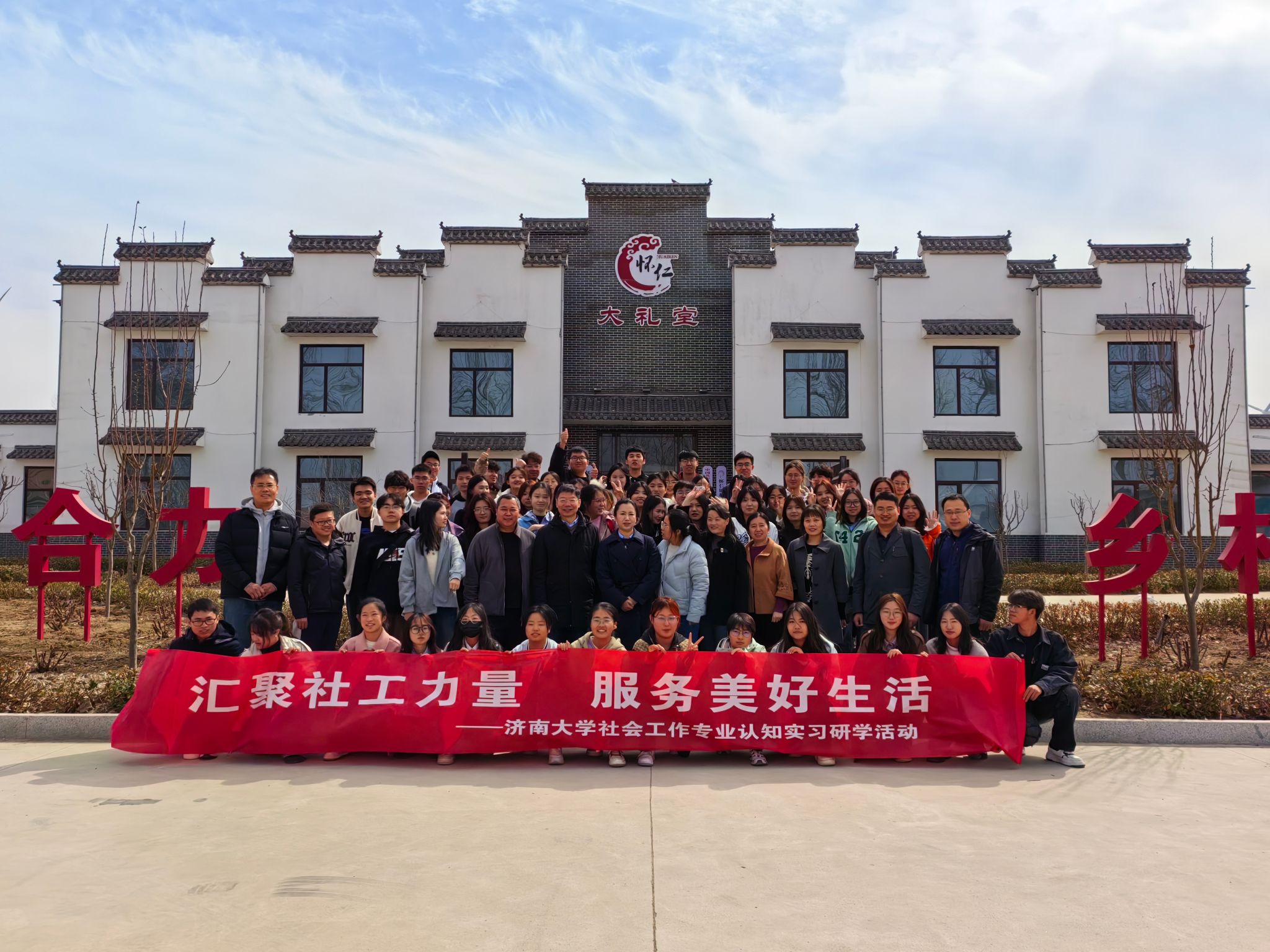 3月17日,学院党委书记李春慧带队赴济南市商河县怀仁镇开展乡村振兴研学活动,社会学系党支部、系部分教师及社会工作专业2023级全体同学参加。怀仁镇党委副书记、镇长崔维波,镇党委副书记王德利,镇党委委员、政法委员、副镇长高传利,镇党委委员、人武部长孙立军,镇党委委员、宣传委员杨小君,副镇长信师锐等陪同调研。