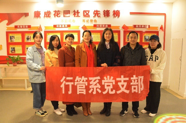 正处级组织员国迎春、行管系教师宁有才、韩慧、任伟伟、吴限红和行管19级马璐媛、刘欣玥参加仪式。仪式由康成花园社区党总支书记韦双双主持。