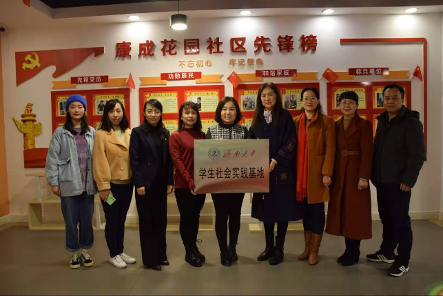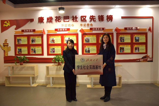 正处级组织员国迎春与康成花园社区党总支书记韦双双签订结对共建协议书,并共同为学生社会实践基地揭牌。