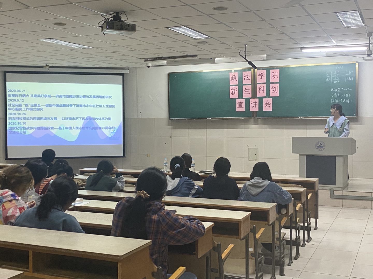 学生会科创中心举办新学年首场青春创新创业论坛——新生科创宣讲会。本次宣讲会邀请到获“挑战杯”主赛道省赛特等奖团队的王清华,“挑战杯”红色专项赛道国赛特等奖的姜竹清和钱慧,主持、参与多项科技立项和SRT的戴大磊,荣获第十七届“挑战杯”省赛三等奖的马璐媛,“青山杯”调研报告一等奖获得者张美慧。