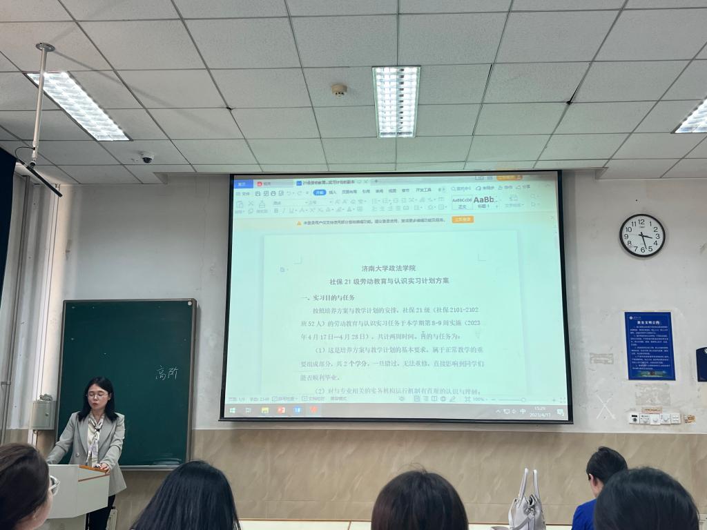 为进一步加深学生对劳动教育的理解、更好地推进实习工作的顺利开展,4月17日下午,人力资源与社会保障系在第一教学楼成功召开2021级劳动教育与认识实习动员大会。动员会由人力资源与社会保障系副主任刘艳丽老师主持,系主任杨风老师、系副主任刘雪老师和社保2021级全体同学共同参加。