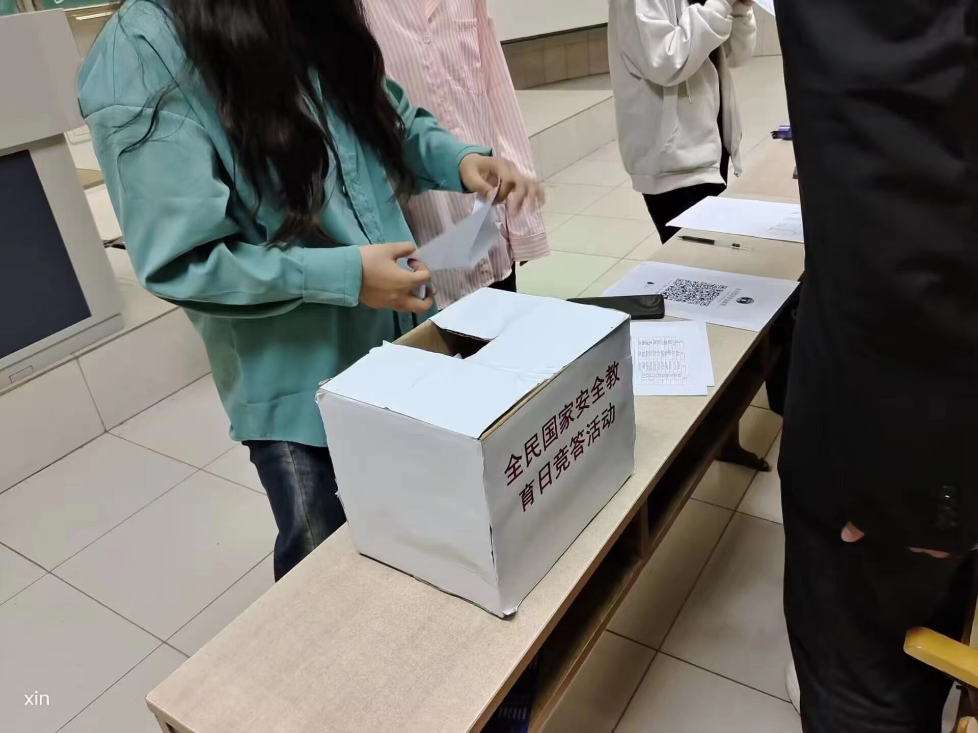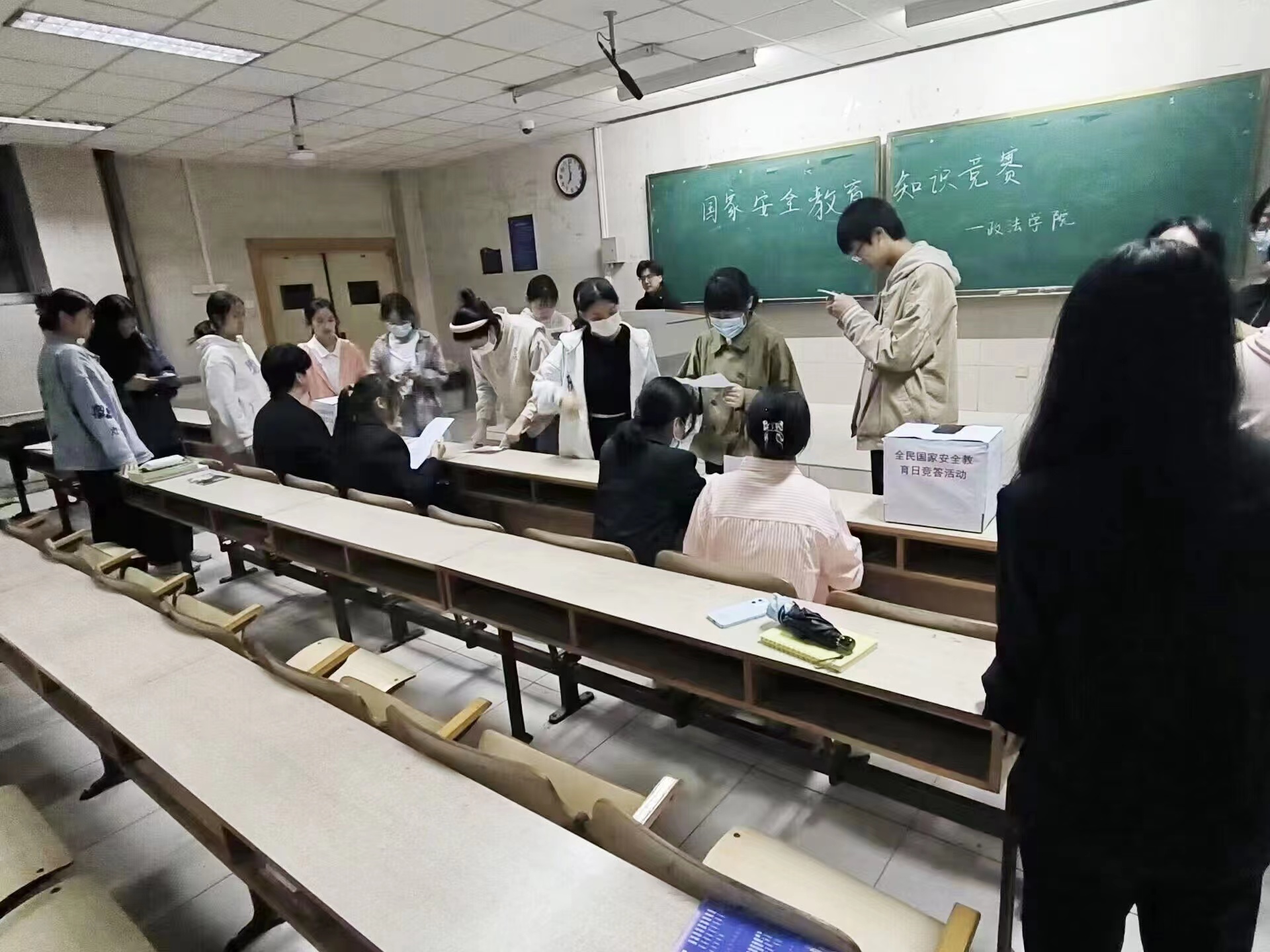 此次活动采用知识竞答形式,竞答包含军事安全知识、文化安全知识、深海安全知识等一系列问题,帮助同学们更加全面了解国家安全体系。活动开始后,首先,同学们有序排队签到,在相应的题箱内抽取有关国家安全的问题进行作答,竞答过程充满趣味性。随后,由活动工作人员对参赛同学们的答题情况进行统计并对有疑问的问题进行讲解答惑。活动结束后,同学们纷纷表示参加此次全民国家安全教育日竞答活动受益匪浅,除了明确自身保卫国家安全的责任义务外,同学们还学习到了当真正遇到涉及国家安全的情况时应该如何正确应对。