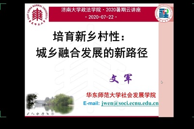 2020暑期系列云讲座(社会学)在腾讯会议平台顺利举行,活动邀请教育部“长江学者”特聘教授、华东师范大学社会发展学院院长文军教授做题为《培育新乡村型城乡融合发展的新路径》的专题讲座,讲座由糖心视频