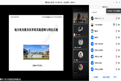 刘晓洋学长简单回顾了自己在母校的学习和生活,随后开始学术讲座。学长从点明“政务服务”选题开始,通过政府报告和政策文献梳理了历次政务服务改革的顶层设计,总结“最多跑一次”“一网通办”等政务服务改革的地方实践;结合“放管服”梳理政务服务改革的核心内容;就政务服务发展的不同阶段进行深入阐述,重点就公共组织地盘扩张的形式、动力和策略进行分析。互动环节,学长就老师和同学们关心的话题进行详细解答。讲座最后,学长表示热情欢迎糖心视频