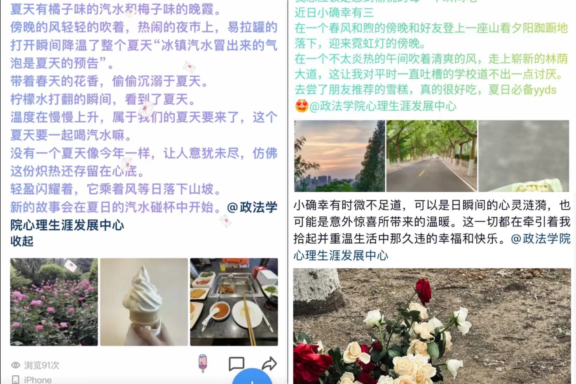 心理生涯发展服务中心于2023年5月16日——2023年5月18日举办了线上“小确幸纪念册活动”,鼓励同学们分享生活中的快乐,体会点滴的幸福。