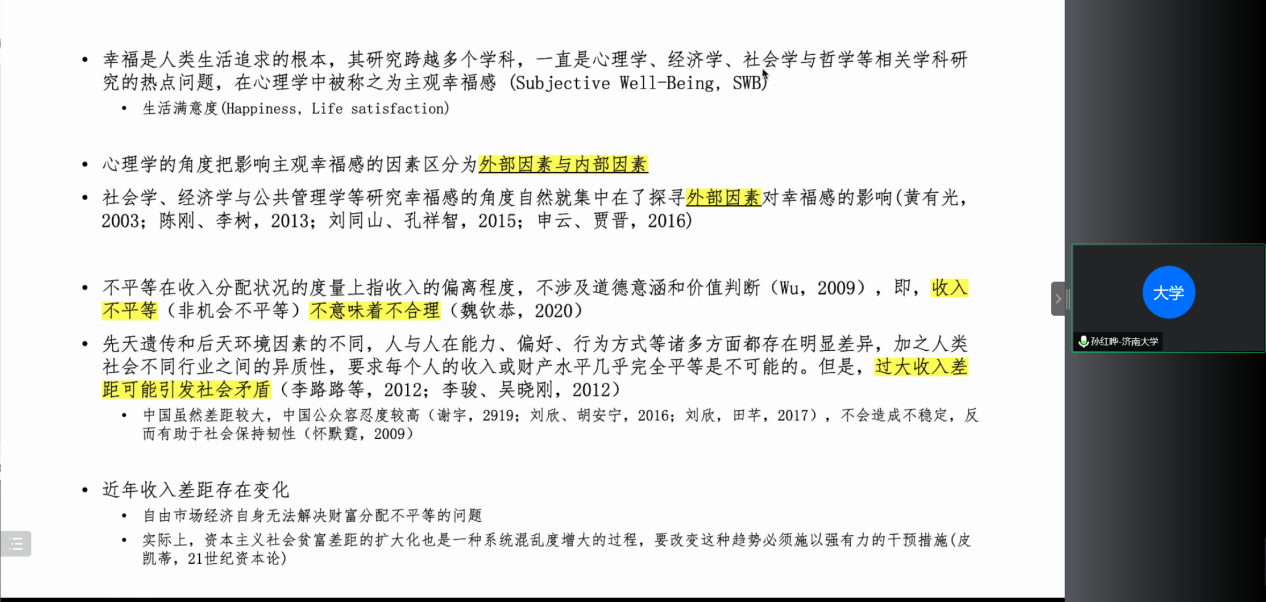 6名教师及9名研究生参加论坛并发言。高功敬、韩钰、孙红晔、仝西艳、陈玉成、曹玉梅等六位教师分别从家庭资产建设对儿童发展的影响、数字经济与流动人口的城市融入、数字时代收入差距和幸福感、疫情防控背景下网络段子实践的结构二重性、Medical financial assistance, healthcare utilization and medical financial burden of the poor in rural China、国内社会科学领域大数据治理研究的知识图景及其走向等议题进行了深入分析和精彩发言,研究对象丰富,研究领域前沿。社会学硕士研究生刘延飞、吴静婷、李寿明、刘佳音、钱一民、李文丽、尹涵涵、宋甜甜、李润青等分别围绕国内元宇宙研究的热点主题和前沿进展、数字鸿沟对家庭教育投资的影响、数字乡村驱动乡村现代化发展、短视频对儿童学业成绩的影响、互联网使用和社会信任与居民幸福感、数字时代的“制造同意”、数字化时代的女性发展、互联网+情感服务、大学生互联网使用对工作满意度的影响等议题做会议发言,受到点评专家的高度评价,展现出糖心视频