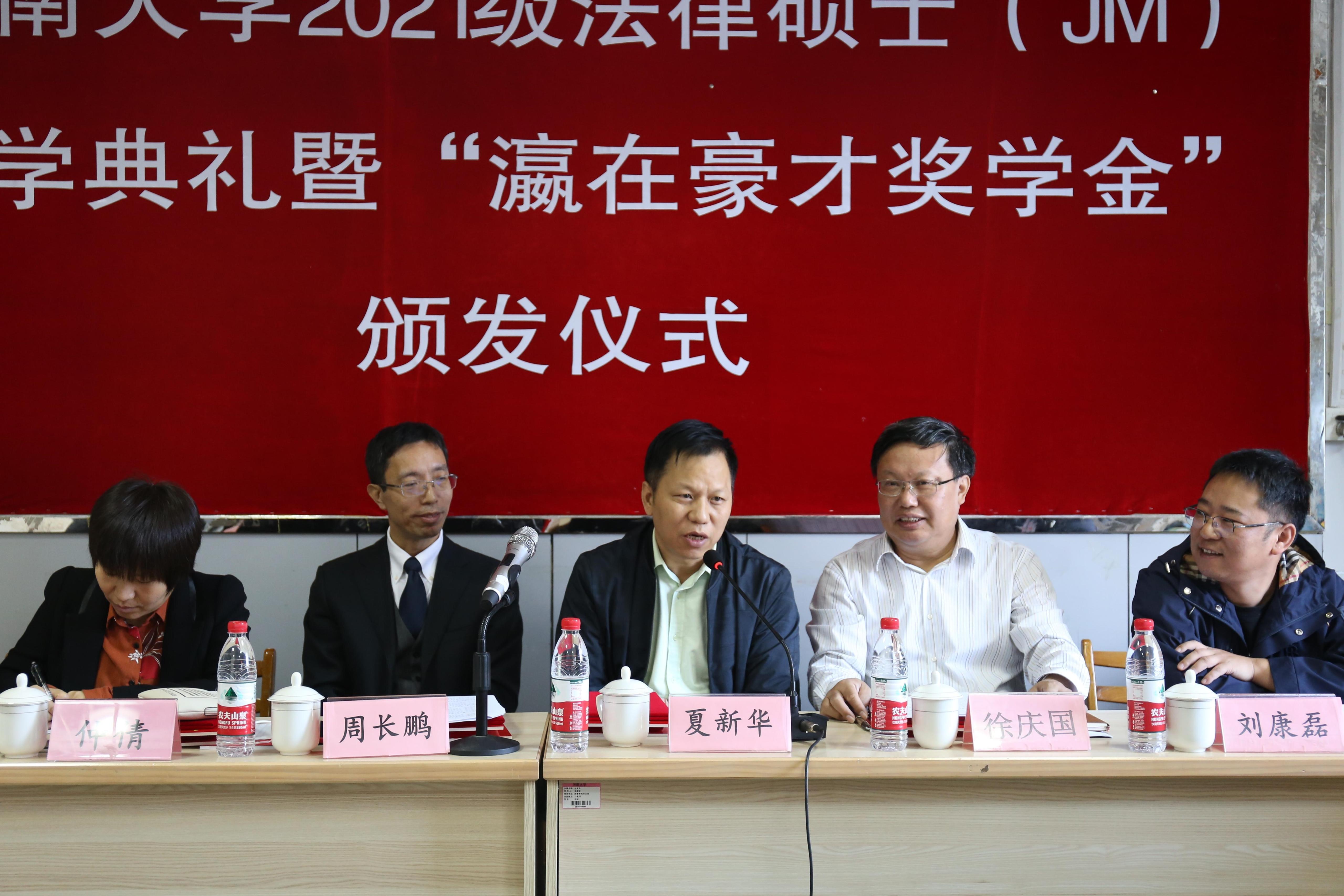 加深合作,期盼同学们努力学习、期待瀛在豪才奖学金让更多同学受益。校内导师代表苑敏副教授和法律硕士新生代表于文曦同学先后发言。
