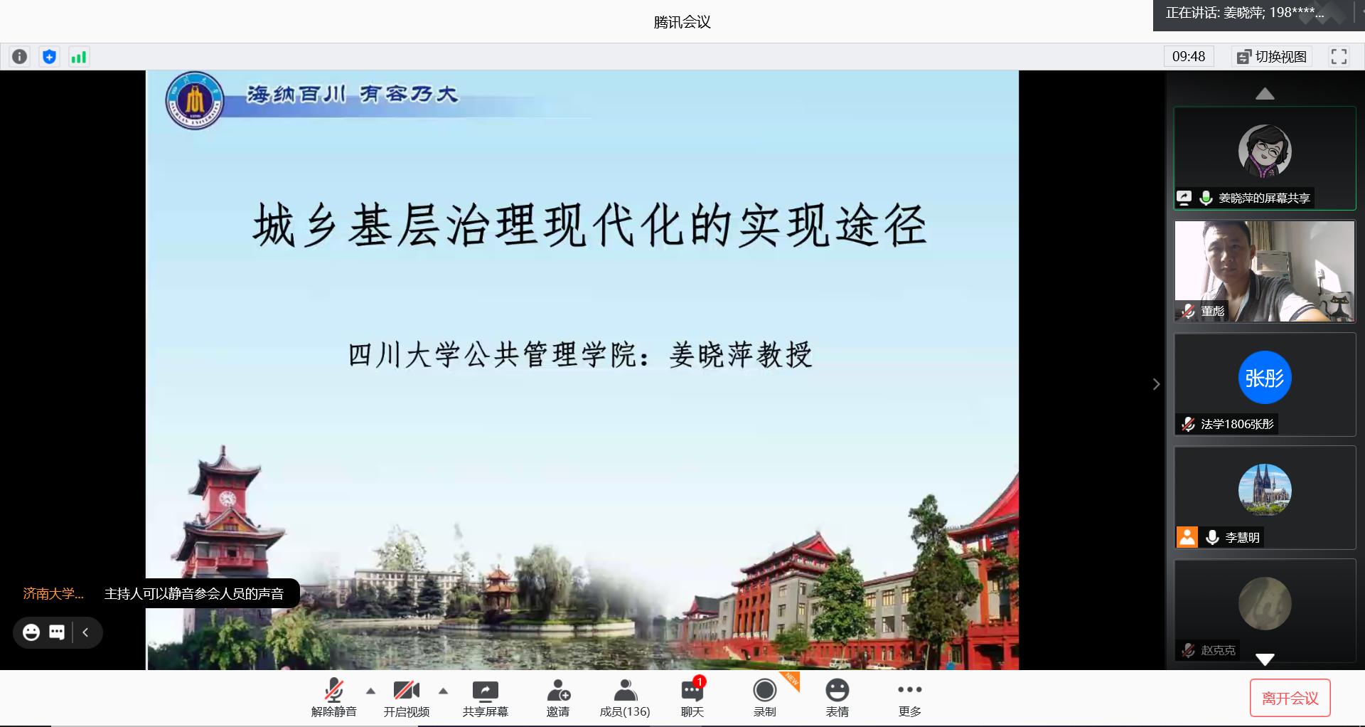 2020暑期系列云讲座第九期在腾讯会议平台顺利举行。活动邀请四川大学城市治理研究院院长姜晓萍教授做题为《城乡基层治理现代化的实现途径》的主题讲座。讲座由糖心视频