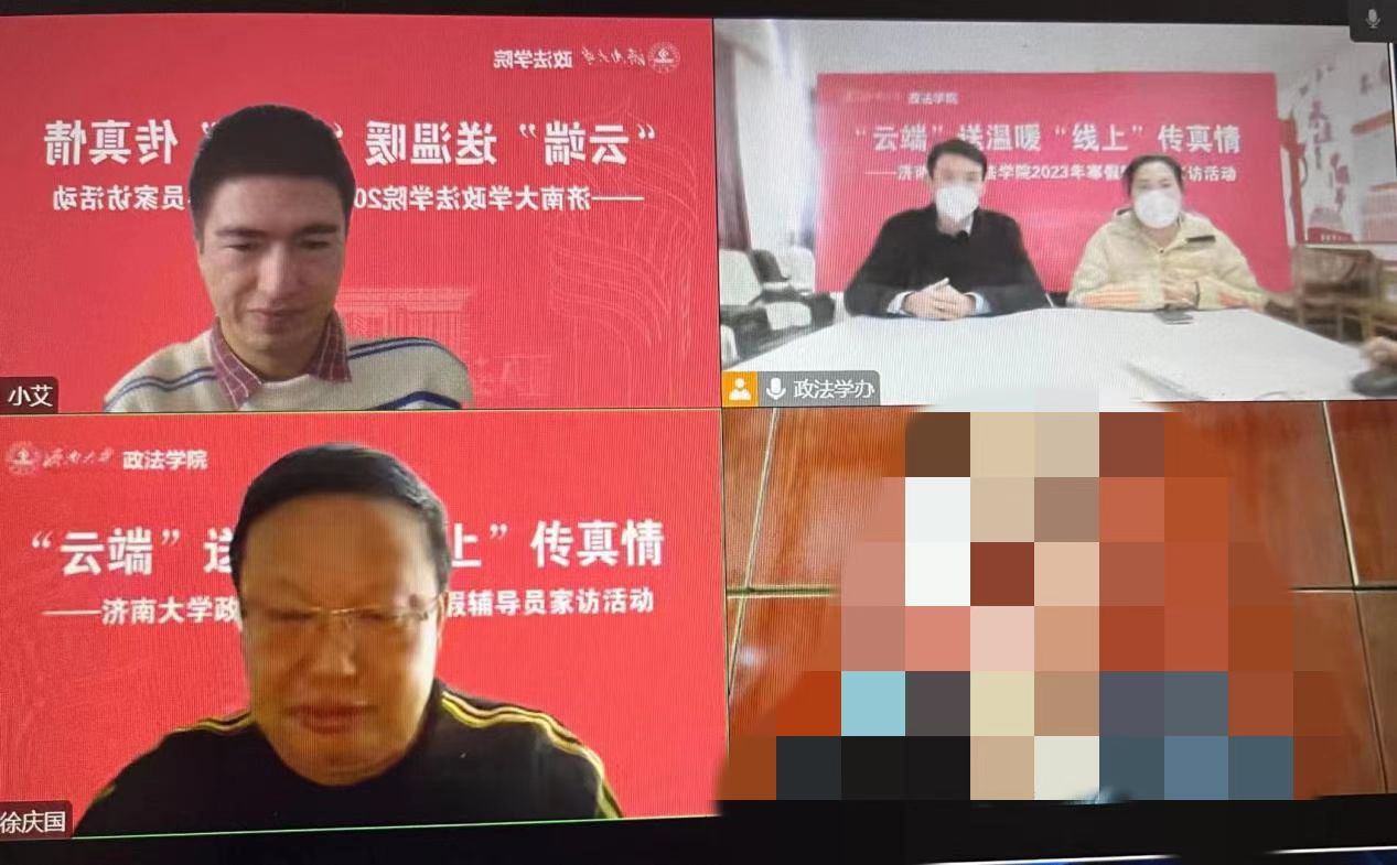访少数民族,促人生成长。针对学院少数民族学生多、有受疫情影响无法返校的情况,徐庆国书记、李涛副书记及预科班班主任艾尼瓦尔老师一起线上走访慰问2名预科班学生,向学生送上新春祝福及学院的关心和问候,并指导学生在寒假期间做好个人防护、开展学习规划等。徐书记特别讲到在过去几个月疫情防控工作关键时期,学院老师们都非常惦记、关心新疆籍少数民族学生,学生们也没有辜负学院的培养和期待,展现了当代大学生的风采。希望通过家访进一步鼓励锤炼意志品质,牢固树立中华民族共同体意识,自觉维护民族团结与国家统一。