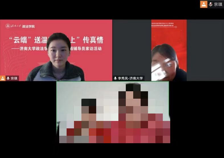 访本科新生,寄青春希望。学院党委书记书记徐庆国与2022及辅导员刘晓娟老师线上家访了本科新生小孟和小许。交流中,徐书记向两位同学及其家长介绍了学校的校园环境、办学条件、学科专业以及在教学研究方面取得的成绩,并结合学生的专业和疑问,就人才培养,学业规划等方面与其进行了针对性的交流与指导。云端家访可以更加清晰、更有针对性地了解了大一新生的学习生活状况,为今后的学生工作与家长的支持配合打下了扎实的工作基础。