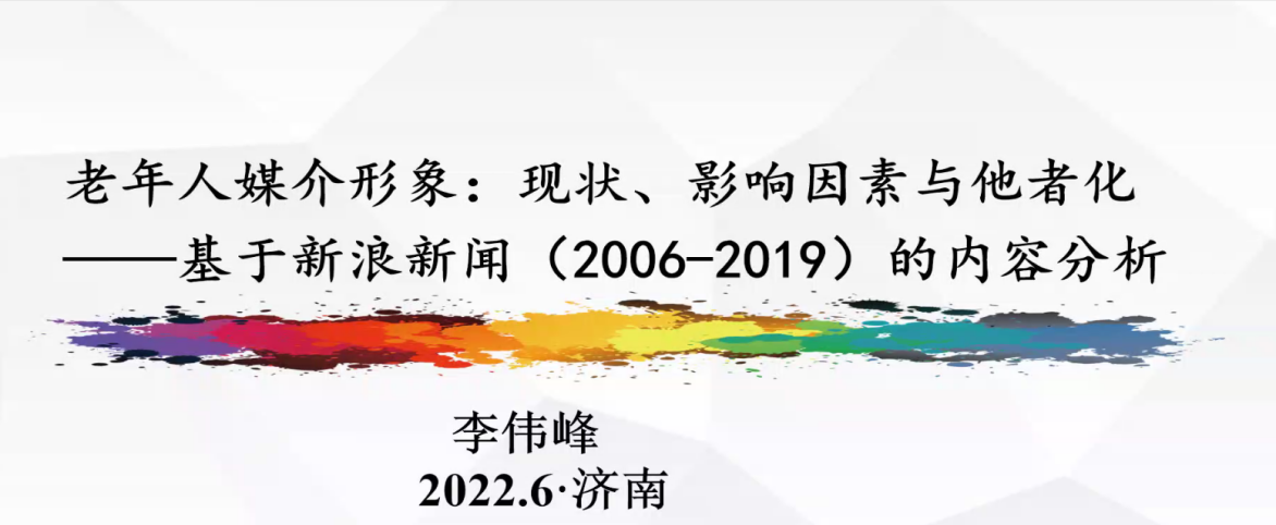 李伟峰教授报告的主题为《老年人媒体形象:现状、影响因素与他者化》,从研究背景与问题、研究综述、分析框架、研究方法、研究发现五个方面展开2006-2019年新浪新闻中关于老年人报道的内容分析过程及主要结论。为我们全面展示了脸谱化的老年人媒体形象,并在多方面分析老年人媒介形象的影响因素和影响机制后得出老年人媒介形象是社会主流群体将老年群体“他者化”作用的结果。
