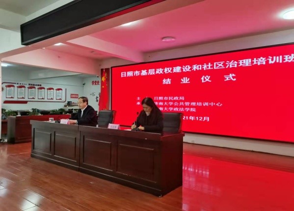 正处级组织员国迎春主持结业仪式,日照市民政局党组成员、副局长丁志强对三天来的学习培训进行了总结。对学员们的学习热情进行了充分肯定,通过专家的精心授课指导,达到了预期的培训效果,同时对学员们下一步的工作提出了新的更高的要求,希望参训学员把学习培训成果转化为谋划发展推动工作的务实举措,力争使今后日照市的基层政权建设与社区治理工作在以往基础上有所进步、有所提升。