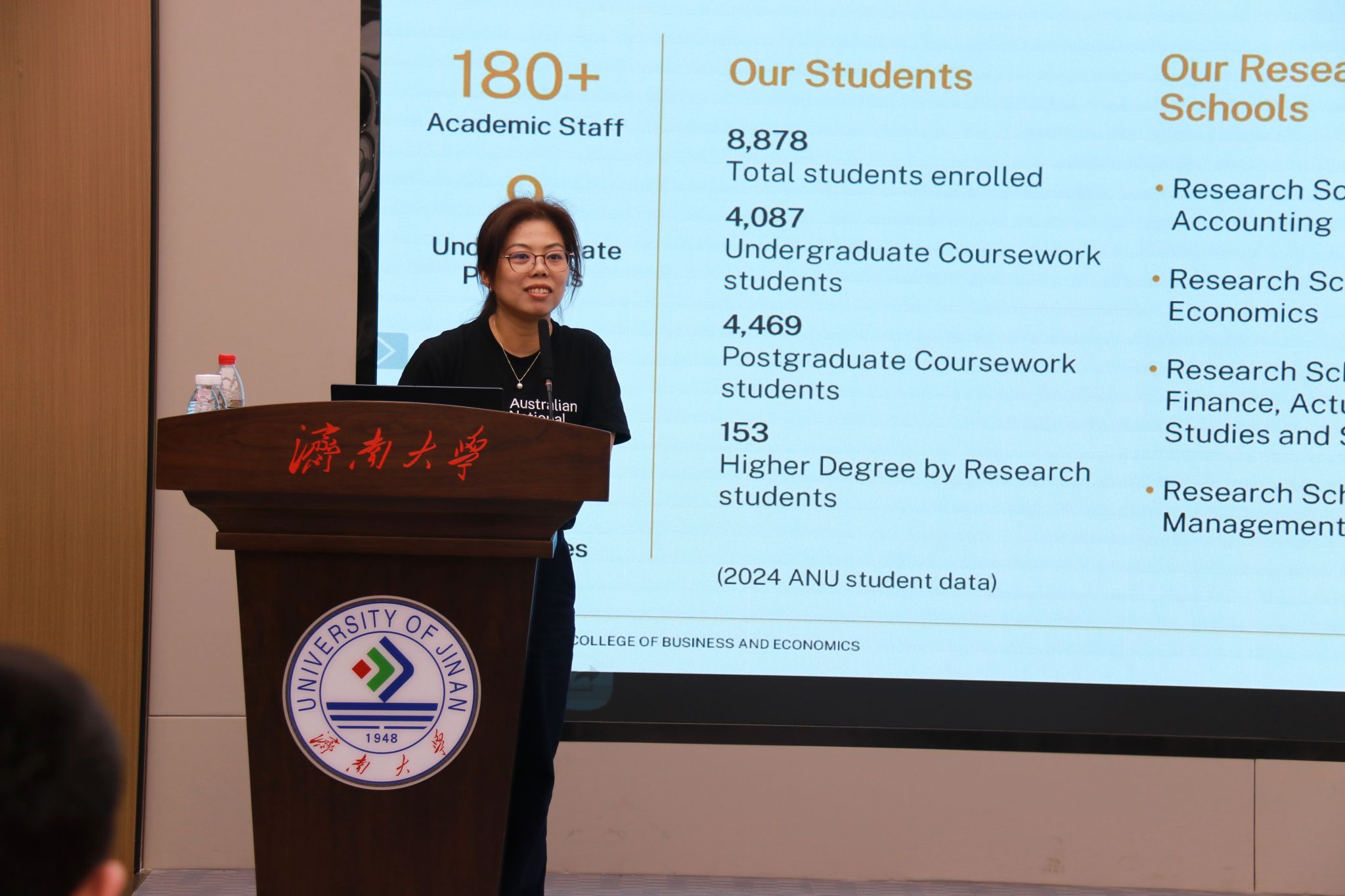 讲座中,崔瑾介绍了澳大利亚国立大学的整体概况,分别介绍了硕士和博士的专业设置、申请方式、课程结构、就业服务等。学生们围绕申请条件、考核方式、奖学金政策、英语口语表达等问题与崔瑾展开交流。