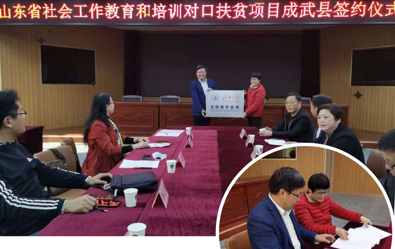 与成武县民政局在菏泽市成武县联合举办“山东省社会工作教育和培训对口扶贫项目成武县签约仪式暨座谈会”。