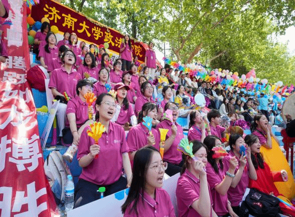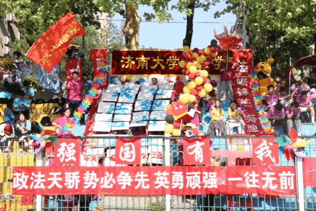 师生方阵步伐铿锵、口号嘹亮,以整齐划一的队列和独具特色的创意表演,赢得了全场师生的阵阵掌声。学生团体操队伍以灵动优美的动作和朝气蓬勃的精神面貌,为开幕式增添了一抹亮色;观众席上,政法学子文明观赛,热情呐喊,为运动员们注入了无限动力。赛场上的每一步都镌刻着政法人奋勇拼搏的钢铁意志,场外的每一声呐喊都彰显着济大人的使命和担当!