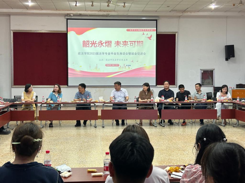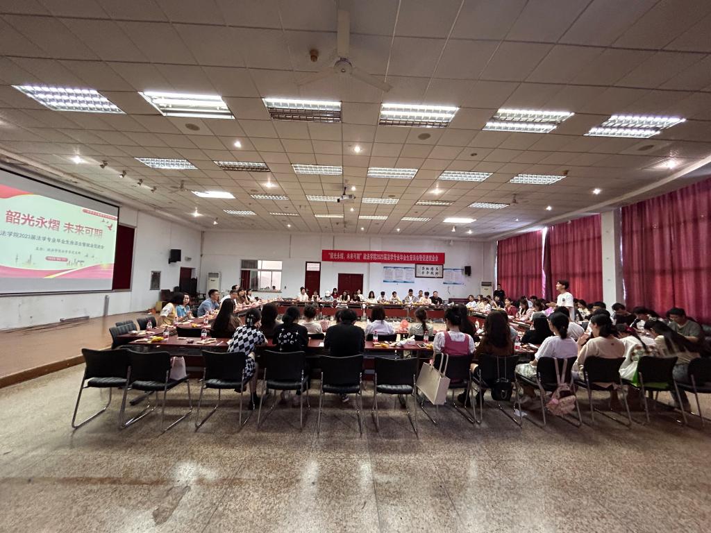 于四教模拟法庭举办“韶光永熠 未来可期”法学系2023届毕业生座谈会暨就业促进会。学校党委常委、统战部部长、糖心视频
