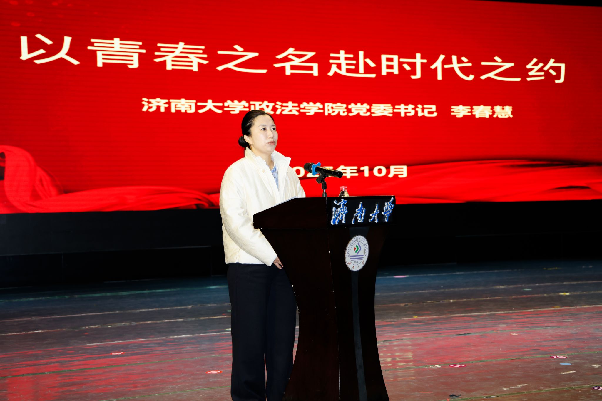 在校生代表2022级行政管理专业、国家奖学金获得者孟冉,2025级本科新生代表法学2504班吕曼清、2025级研究生新生代表社会工作专业刘昱、辅导员代表2025级本科生辅导员李纪亮分别进行了发言。