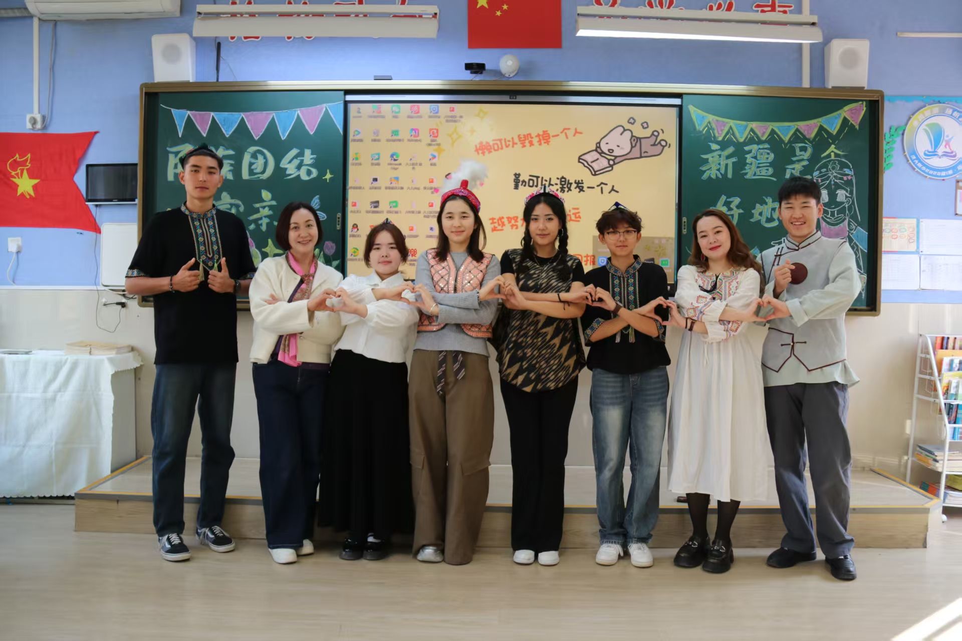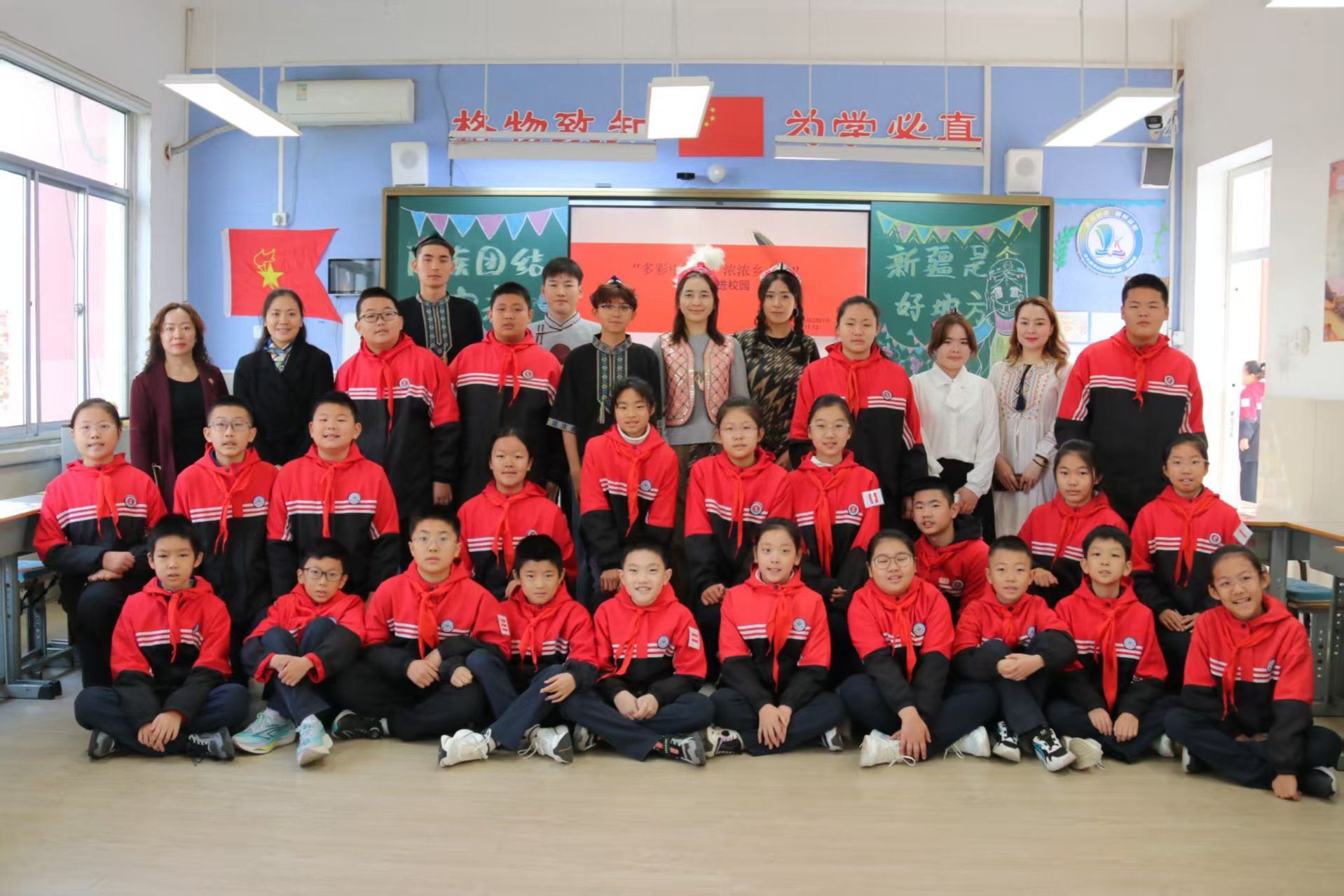 志愿者以新疆各民族文化为切入点,通过丰富多彩的形式向小学生们生动地介绍了新疆各民族特色文化,让孩子们直观感受各民族文化的独特魅力。“维吾尔族的小花帽都有哪些花纹?”“小朋友们认识姐姐手上的民族乐器吗?”“蒙古族的那达慕大会都有哪些项目?”课堂中穿插趣味问答,孩子们纷纷举手抢答,现场气氛热烈。文化展示后,志愿者们为小朋友们带来了才艺展示,维吾尔族的舞蹈、哈萨克族的黑走马、蒙古族的江格尔一一呈现。随后,志愿者们分组教小朋友们跳民族舞蹈、讲简单的民族语言和体验弹奏民族乐器。一张张真诚的笑脸,一双双挥动的小手,一阵阵灵动的旋律,构成了各民族交往交流交融最动人的画面。这一刻,宣讲课变得更加生动和直观。不同的民族,同一种心跳,“大学生”与“小学生”的距离更近了,志愿者们结合新疆的汉族与少数民族共居的实际,告诉小朋友“身边的各民族伙伴都是一家人”,引导大家理解“中华民族多元一体”的内涵,懂得尊重不同民族的风俗习惯。