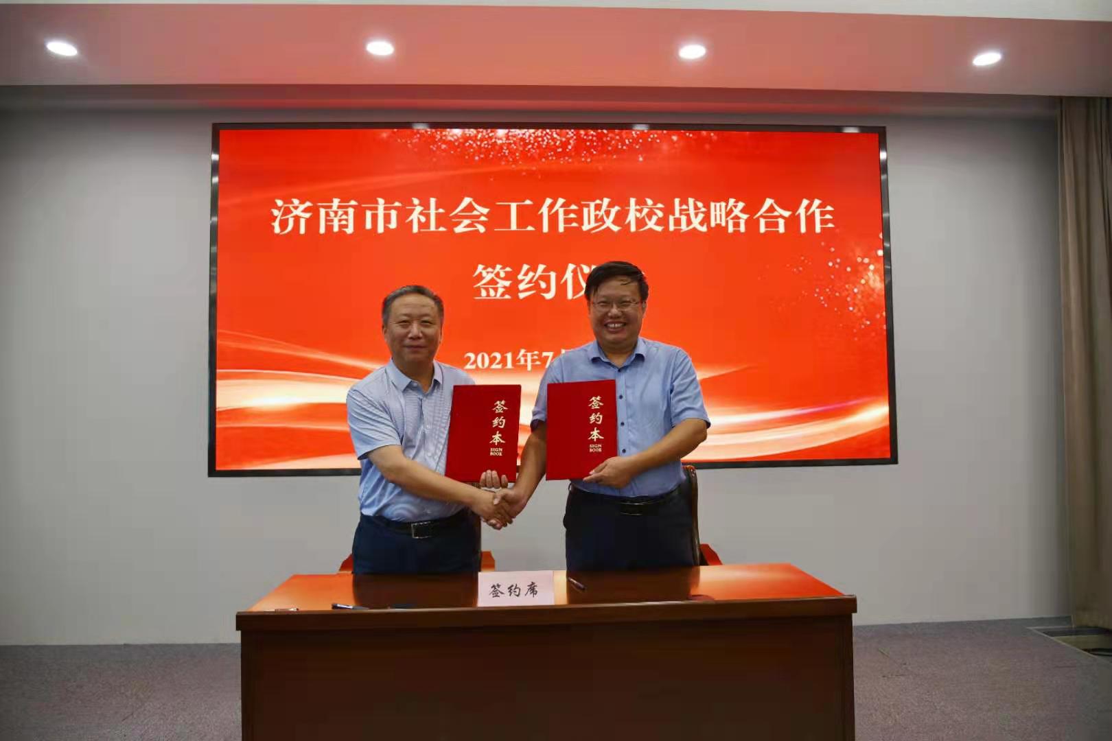 、山东大学、山东建筑大学、山东财经大学、山东女子学院、齐鲁师范学院、山东青年政治学院、山东管理学院的8位高校代表签订了《济南市社会工作政校战略合作协议》,这标志着济南市社会工作专业建设有了新的平台和“根据地”。