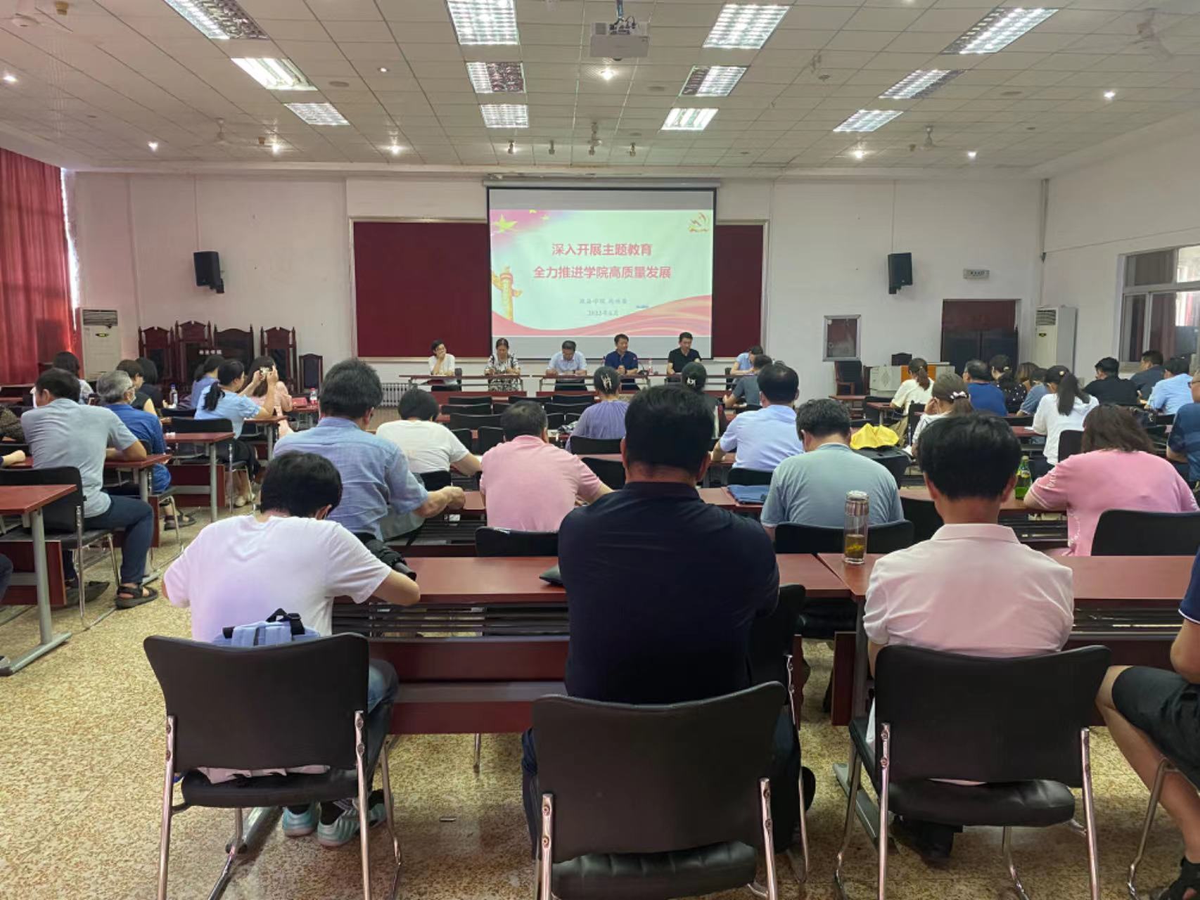 6月27日下午,学院在4号教学楼701会议室召开全体教职工大会暨主题教育专题党课。学院领导班子成员、全体教职工参加会议,会议由党委书记徐庆国主持。