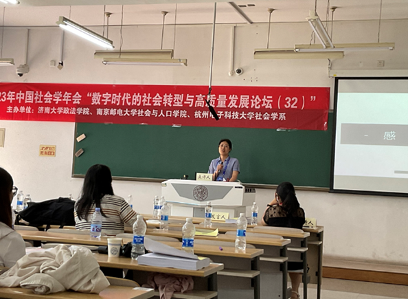 硕士研究生闫国涛基于SEM模型研究了青年互联网使用影响社会参与的信任机制。南京邮电大学硕士研究生周庆研究了数字融入、社会支持对老年人精神生活共同富裕水平的提升作用。最后,南京邮电大学周建芳教授进行了点评,她指出前面两位教授在如何进行社会科学研究上为研究生们做了很好的示范,鼓励青年学者增强问题意识,深化理论研究以丰富实证社会学研究的内涵。