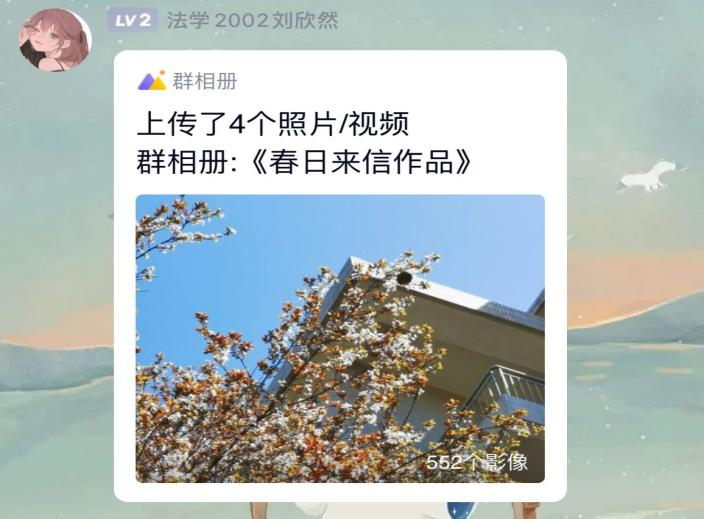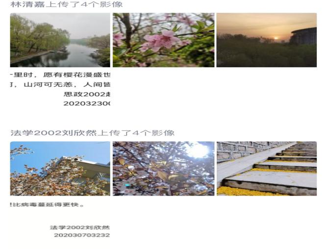 学生共同参与,同学们拍摄校园春日照片以及工作者忙碌的身影,感受到春日的美好、工作者的苦与甜,诠释了生命的意义,获得新一轮的生命与感悟。在活动开展前,负责本次活动的工作人员通过QQ空间推文和班级群通知的形式进行宣传,让各位同学提前了解活动内容,进行报名和准备,同时以组建活动群聊的方式为同学们答疑解惑。4月8日上午活动正式开始,全院同学陆续以照片和文字的形式与大家记录并分享春日里的温暖与感动,探索到校园里的动人春光,表达了对工作者们的感谢和敬意。经过为时五天的作品征集,工作人员们严格按照评选标准对所征集到的作品进行了一、二、三等奖的评选,根据评选等级相应的予以到梦空间加分。至此,本次活动圆满结束。