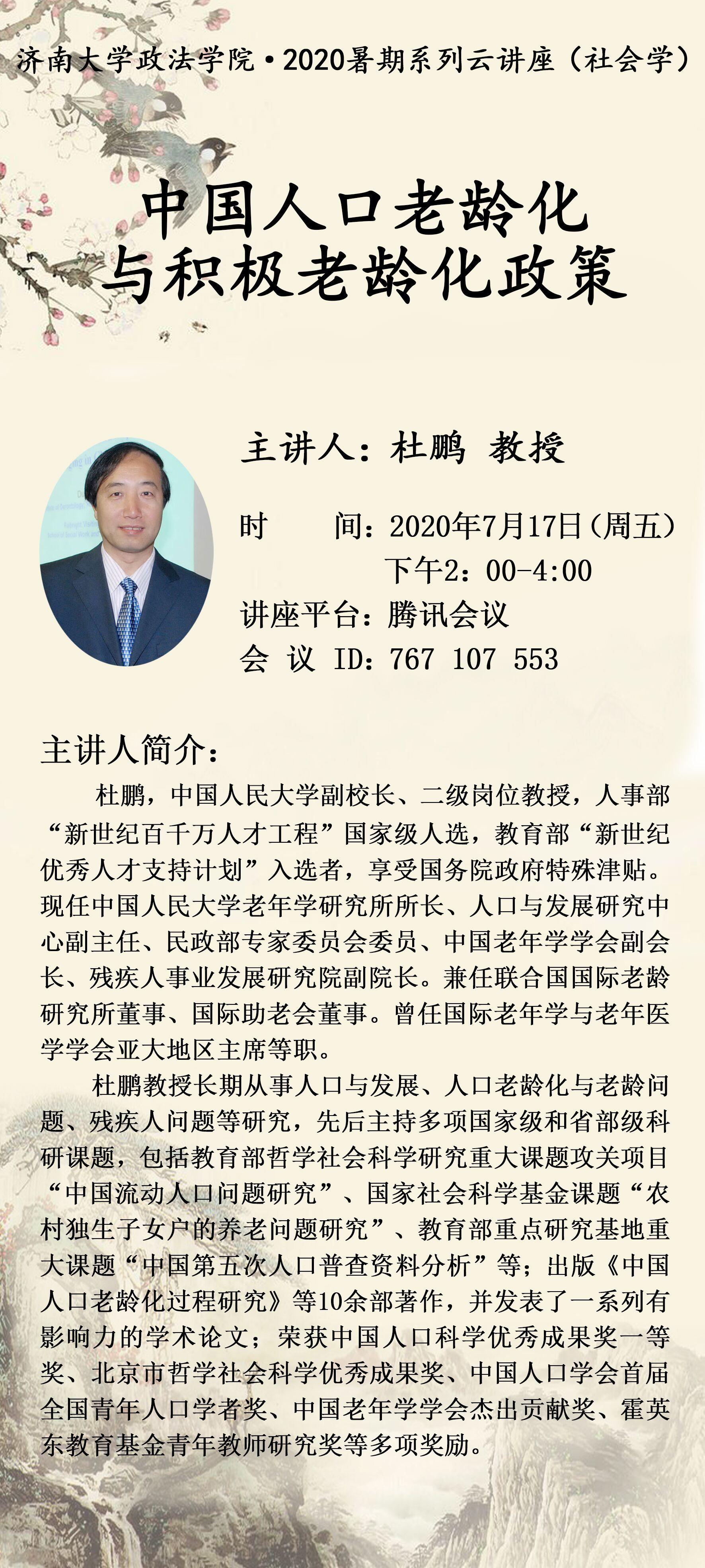 2020暑期系列云讲座--中国人口老龄化与积极老龄化政策