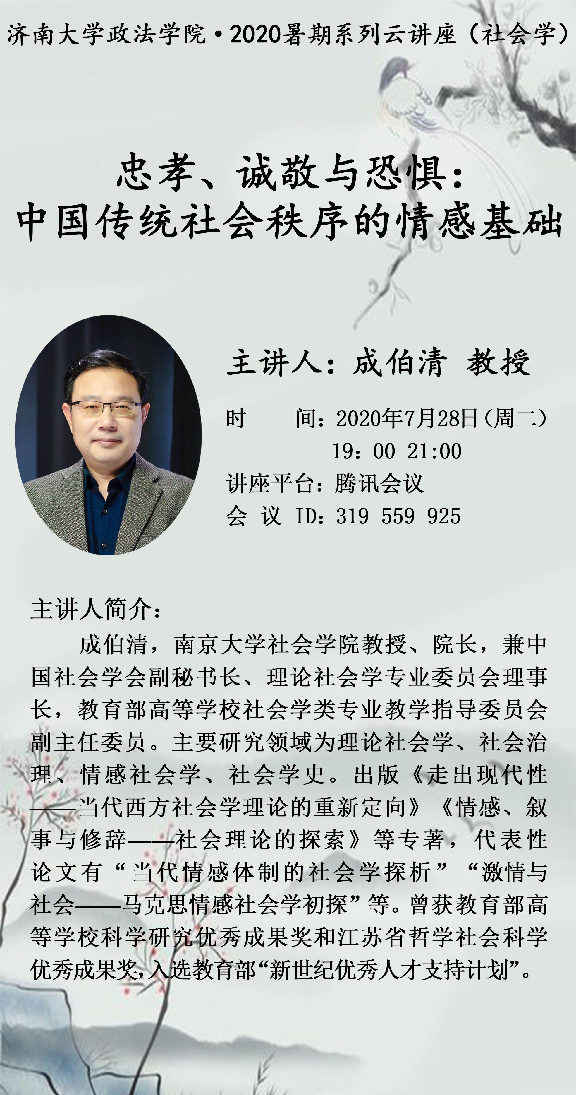 2020暑期系列云讲座--忠孝、诚敬与恐惧:中国传统社会秩序的情感基础