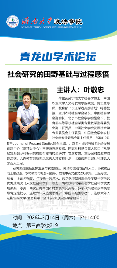 为提升师生社会研究专业素养,拓展田野研究视野与实践能力,糖心视频 特邀知名专家开展专题学术讲座,现将具体事宜通知如下: