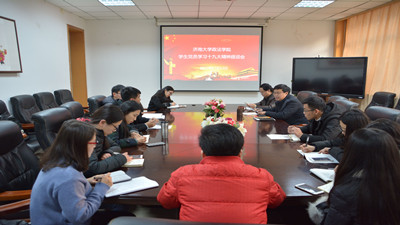 会上,各学生党支部书记汇报十九大精神学习情况,通过微信群等线上平台及时推送学习材料,广泛宣传十九大精神,线下自主学习、集体收看党的十九大开幕式、聆听专家宣讲报告、举办党的基础理论知识竞赛等多种形式,营造学习十九大精神的良好氛围,确保学生党员准确把握和深刻领会十九大精神的实质和丰富内涵,促进十九大精神入脑入心。党员代表踊跃发言,畅谈感想,结合专业特点和个人实际,分别从围绕“不忘初心、牢记使命”,新时代中国特色社会主义,坚持全面依法治国,坚定文化自信、建设文化强国以及青年成长成才与使命担当等主题谈了自己的学习体会。学生们纷纷表示作为新时代的青年学生,是中华民族伟大复兴的见证者、亲历者、建设者,更应该不忘初心,牢记时代赋予的使命和责任。志存高远,砥砺前行,为实现中华民族伟大复兴的中国梦贡献自己的力量。