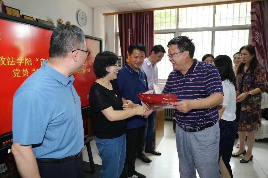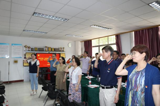领导为党员教师颁发政治生日贺卡并赠书。全体党员面向党旗庄严宣誓,重温入党誓词,党员代表向大家分享了自己入党的初心和故事、畅谈了入党以来的感受和体会、表达了从事教书育人事业的责任和自豪。徐书记表示,希望各位老党员同志传承红色精神、坚守初心使命,继续发挥余热、积极建言献策;年轻党员教师要以老党员、老教师为榜样,坚定理想信念,牢记立德树人使命,积极投身到本职工作中,为党育人、为国育才。