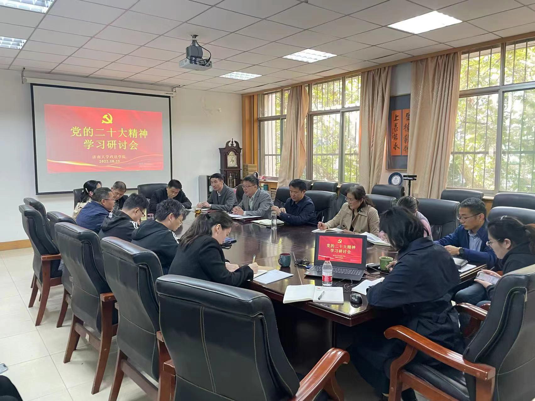 党委副书记、副院长李涛说到,党的二十大报告中,习近平总书记对青年和青年工作的重要阐述,内涵丰富、寓意深刻,为做好新时代党的青年工作指明了前进方向、提供了根本遵循。行政管理系党支部书记韩慧表示将认真学习和贯彻党的二十大精神,准确把握精神实质,深刻领悟丰富内涵,将学习成效转化为做好各项工作的强大动力,努力提高思想高度,情感忠诚度和行动力度。党的二十大精神宣讲团成员唐斌尧分享了自己对“中国式现代化”的理解,表示要将党的二十大精神转化成一系列有“温度”和“青春味”的思想政治课,打通青年理论武装“最后一公里”,坚守立德树人根本任务,坚持为党育人、为国育才,把党的二十大精神真正落实到人才培养、科学研究、社会服务等工作中。大家一致认为,党的二十大报告是马克思主义中国化时代化最新成果,是全面建设社会主义现代化国家、全面推进中华民族伟大复兴的行动指南、纲领性文件和政治宣言,对于推动全党进一步统一思想、统一意志、统一行动,团结带领全国各族人民谱写新时代中国特色社会主义更加绚丽的华章具有重大政治意义、重要现实意义和深远历史意义。