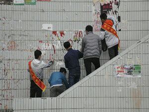 青年志愿者协会开展学雷锋清理小广告活动。青协部分成员参加了本次活动。