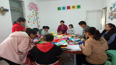 按计划今天下午两点在大涧沟东小学开展剪纸活动,我们三名志愿者在两点之前到达指定地点。